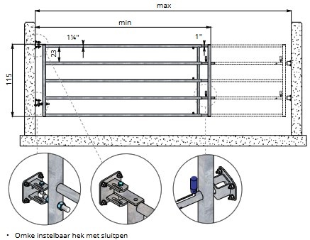OMKE instelbaar hek met sluitpen